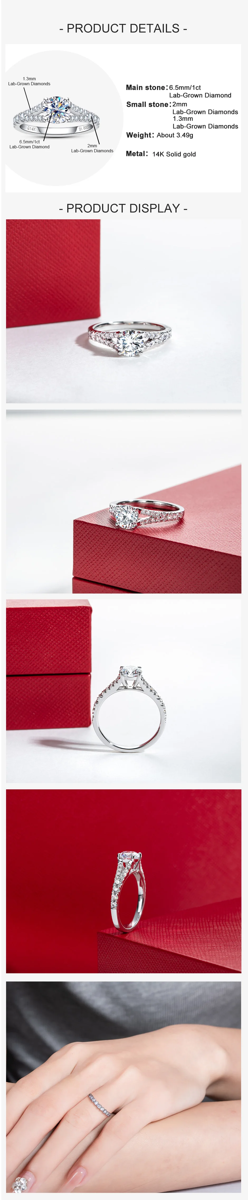 AnuJewel 14K White Gold IGI 1ct D Color VVS Lab Grown Diamond Engagement Rings Split Shank Promise Ring Anniversary Gifts